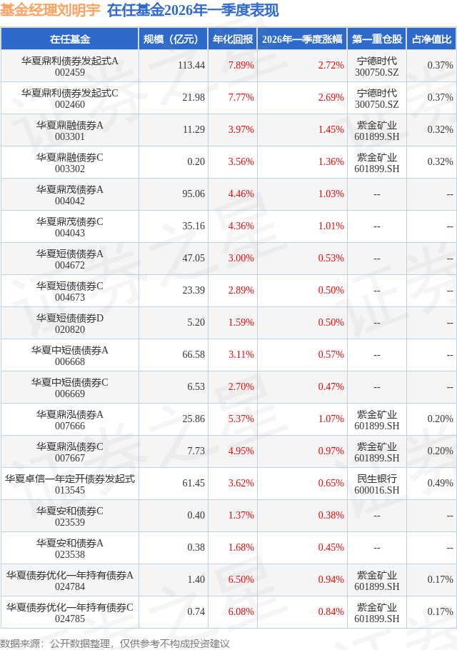 证券之星消息,日前华夏鼎泓债券C基金公布一季报,2026年一季度最新规模7.73亿元,季度净值涨幅为0.97%。