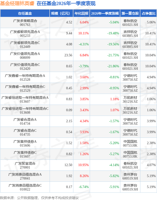 证券之星消息,日前广发集祥债券C基金公布一季报,2026年一季度最新规模0.82亿元,季度净值涨幅为-5.27%。
