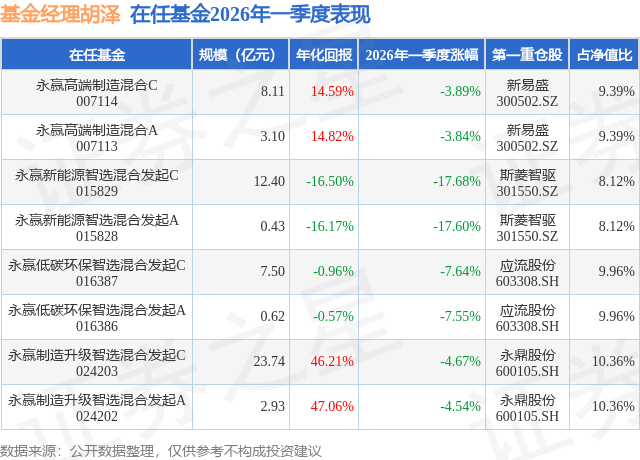 证券之星消息,日前永赢低碳环保智选混合发起A基金公布一季报,2026年一季度最新规模0.62亿元,季度净值涨幅为-7.55%。