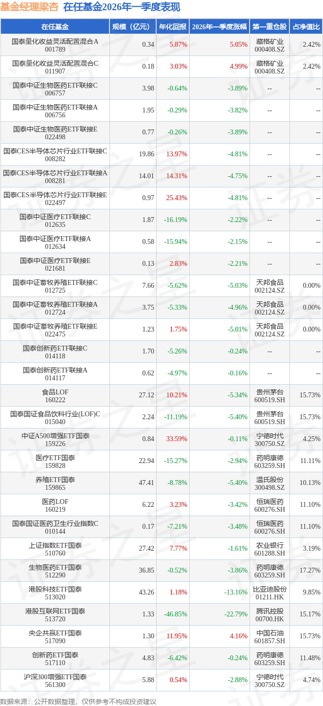 证券之星消息,日前港股科技ETF国泰基金公布一季报,2026年一季度最新规模43.26亿元,季度净值涨幅为-13.16%。