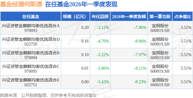 证券之星消息,日前兴证资管金麒麟均衡优选混合B基金公布一季报,2026年一季度最新规模0.1亿元,季度净值涨幅为-7.97%。
