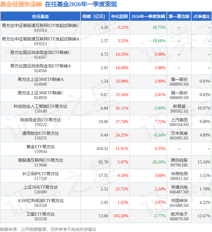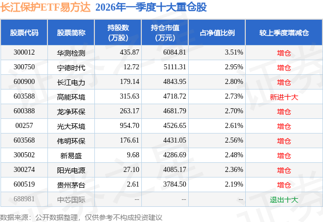 证券之星消息,日前长江保护ETF易方达基金公布一季报,2026年一季度最新规模17.31亿元,季度净值涨幅为3.6%。