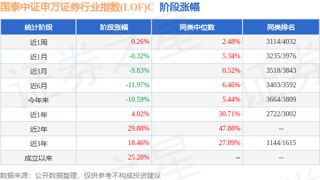 从业绩表现来看,国泰中证申万证券行业指数(LOF)C基金过去一年净值涨幅为4.02%,在同类基金中排名2722/3002,同类基金过去一年净值涨幅中位数为30.71%。而基金过去一年的最大回撤为-23.52%,成立以来的最大回撤为-28.28%。