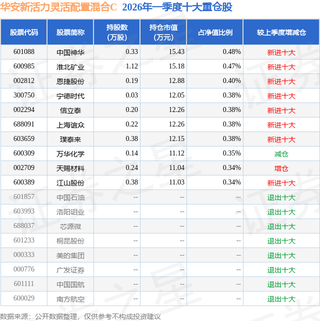 证券之星消息,日前华安新活力灵活配置混合C基金公布一季报,2026年一季度最新规模0.0亿元,季度净值涨幅为-0.66%。