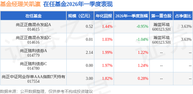证券之星消息,日前尚正正鑫混合发起A基金公布一季报,2026年一季度最新规模0.52亿元,季度净值涨幅为-0.95%。