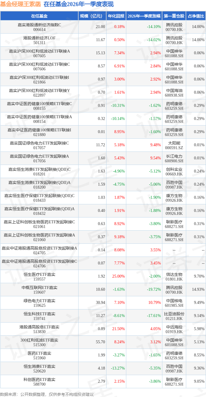证券之星消息,日前绿色电力ETF嘉实基金公布一季报,2026年一季度最新规模30.94亿元,季度净值涨幅为10.79%。