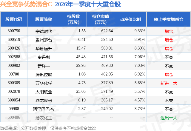 证券之星消息,日前兴全竞争优势混合C基金公布一季报,2026年一季度最新规模0.08亿元,季度净值涨幅为-0.48%。