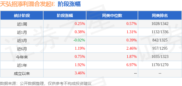 从业绩表现来看,天弘招添利混合发起E基金过去一年净值涨幅为1.92%,在同类基金中排名1170/1270,同类基金过去一年净值涨幅中位数为6.97%。而基金过去一年的最大回撤为-0.94%,成立以来的最大回撤为-0.94%。