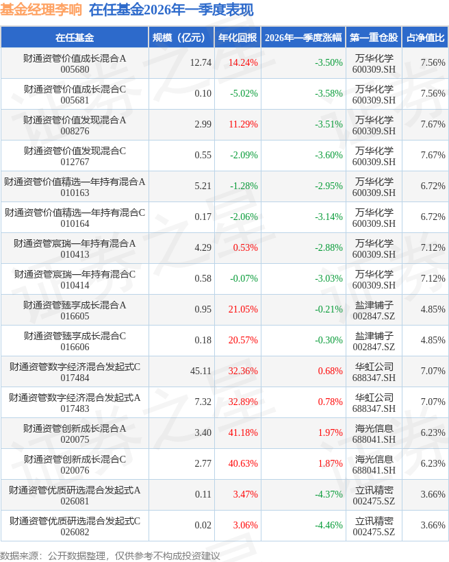 证券之星消息,日前财通资管创新成长混合C基金公布一季报,2026年一季度最新规模2.77亿元,季度净值涨幅为1.87%。