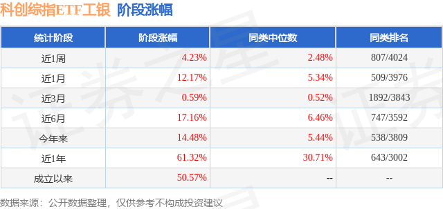 从业绩表现来看,科创综指ETF工银基金过去一年净值涨幅为61.32%,在同类基金中排名643/3002,同类基金过去一年净值涨幅中位数为30.71%。而基金过去一年的最大回撤为-16.19%,成立以来的最大回撤为-19.25%。