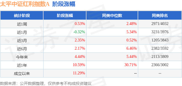 证券之星消息,日前太平中证红利指数A基金公布一季报,2026年一季度最新规模5.39亿元,季度净值涨幅为4.04%。