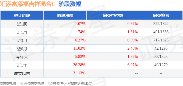 证券之星消息,日前汇添富添福吉祥混合C基金公布一季报,2026年一季度最新规模0.05亿元,季度净值涨幅为3.47%。