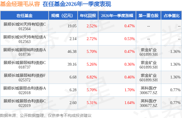证券之星消息,日前景顺长城景颐合利债券A基金公布一季报,2026年一季度最新规模6.28亿元,季度净值涨幅为1.7%。