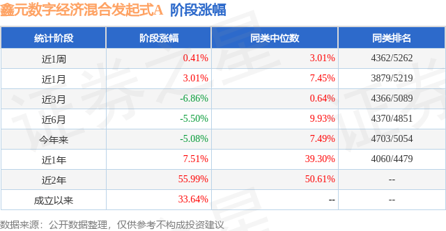 从业绩表现来看,鑫元数字经济混合发起式A基金过去一年净值涨幅为7.51%,在同类基金中排名4060/4479,同类基金过去一年净值涨幅中位数为39.3%。而基金过去一年的最大回撤为-14.66%,成立以来的最大回撤为-34.46%。