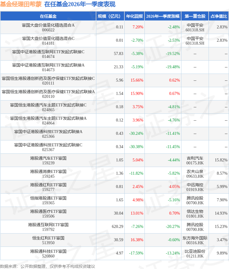 证券之星消息,日前港股通医疗ETF富国基金公布一季报,2026年一季度最新规模30.04亿元,季度净值涨幅为0.7%。