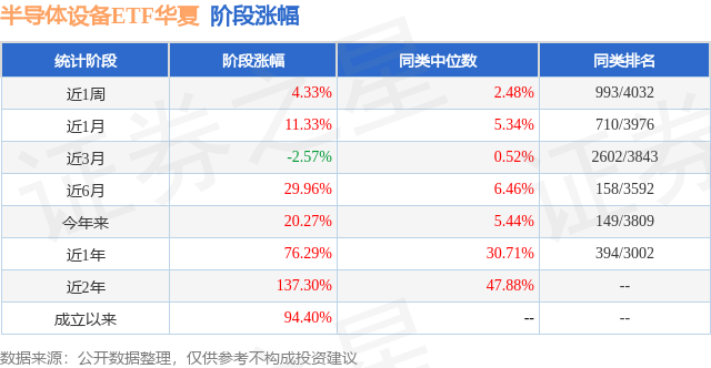从业绩表现来看,半导体设备ETF华夏基金过去一年净值涨幅为76.29%,在同类基金中排名394/3002,同类基金过去一年净值涨幅中位数为30.71%。而基金过去一年的最大回撤为-19.25%,成立以来的最大回撤为-32.72%。