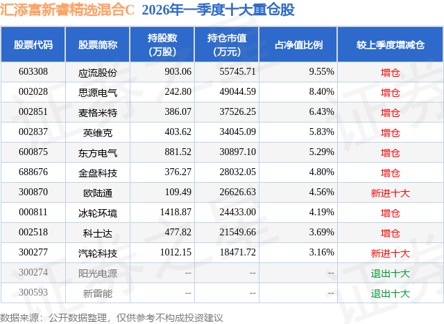 证券之星消息,日前汇添富新睿精选混合C基金公布一季报,2026年一季度最新规模26.8亿元,季度净值涨幅为7.84%。