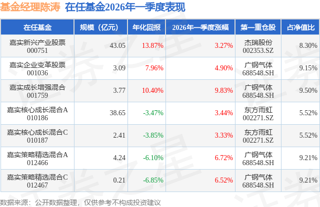 证券之星消息,日前嘉实成长增强混合基金公布一季报,2026年一季度最新规模3.77亿元,季度净值涨幅为9.83%。