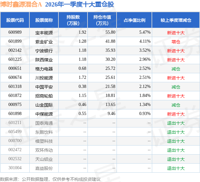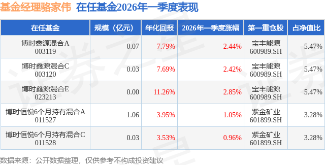 证券之星消息,日前博时鑫源混合A基金公布一季报,2026年一季度最新规模0.07亿元,季度净值涨幅为2.44%。