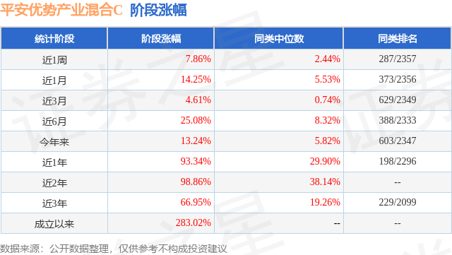 从业绩表现来看,平安优势产业混合C基金过去一年净值涨幅为93.34%,在同类基金中排名198/2296,同类基金过去一年净值涨幅中位数为29.9%。而基金过去一年的最大回撤为-16.03%,成立以来的最大回撤为-50.26%。