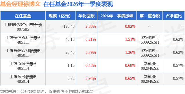 证券之星消息,日前工银添颐债券B基金公布一季报,2026年一季度最新规模0.78亿元,季度净值涨幅为0.65%。