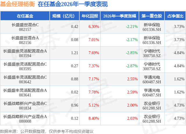 证券之星消息,日前长盛战略新兴产业混合A基金公布一季报,2026年一季度最新规模0.12亿元,季度净值涨幅为2.03%。