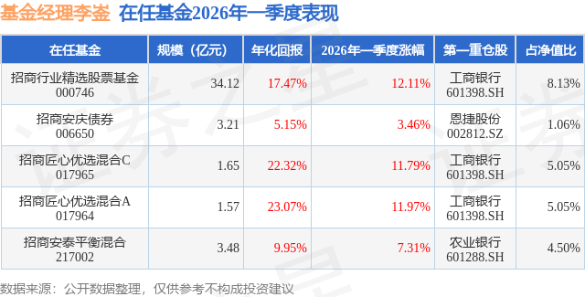 证券之星消息,日前招商安泰平衡混合基金公布一季报,2026年一季度最新规模3.48亿元,季度净值涨幅为7.31%。