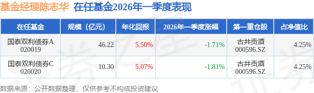证券之星消息,日前国泰双利债券C基金公布一季报,2026年一季度最新规模10.3亿元,季度净值涨幅为-1.81%。
