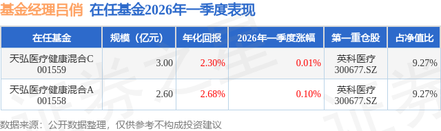 证券之星消息,日前天弘医疗健康混合A基金公布一季报,2026年一季度最新规模2.6亿元,季度净值涨幅为0.1%。
