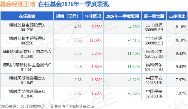 证券之星消息,日前博时丝路主题股票A基金公布一季报,2026年一季度最新规模4.32亿元,季度净值涨幅为-4.33%。