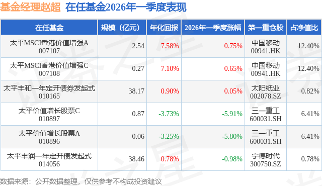 证券之星消息,日前太平价值增长股票C基金公布一季报,2026年一季度最新规模0.87亿元,季度净值涨幅为-5.91%。