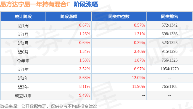 从业绩表现来看,易方达宁易一年持有混合C基金过去一年净值涨幅为3.52%,在同类基金中排名1054/1270,同类基金过去一年净值涨幅中位数为6.97%。而基金过去一年的最大回撤为-2.37%,成立以来的最大回撤为-3.21%。