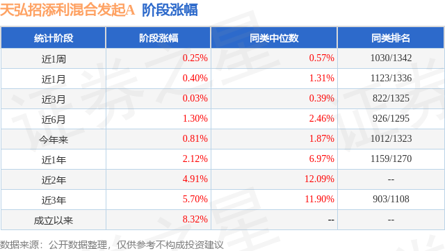从业绩表现来看,天弘招添利混合发起A基金过去一年净值涨幅为2.12%,在同类基金中排名1159/1270,同类基金过去一年净值涨幅中位数为6.97%。而基金过去一年的最大回撤为-0.92%,成立以来的最大回撤为-5.31%。