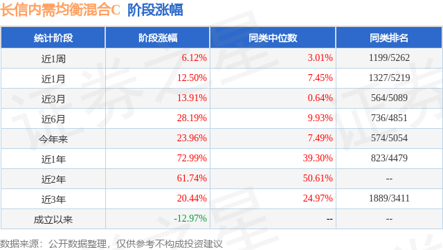 从业绩表现来看,长信内需均衡混合C基金过去一年净值涨幅为72.99%,在同类基金中排名823/4479,同类基金过去一年净值涨幅中位数为39.3%。而基金过去一年的最大回撤为-11.54%,成立以来的最大回撤为-55.28%。