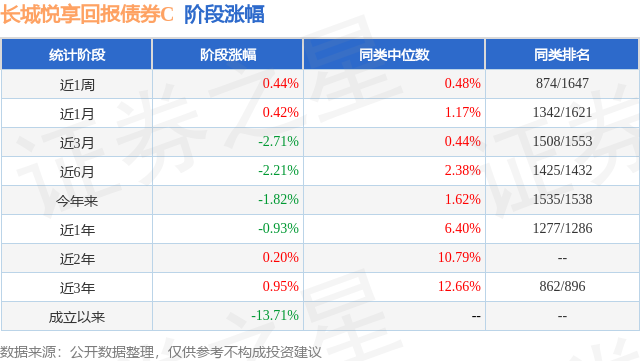 从业绩表现来看,长城悦享回报债券C基金过去一年净值涨幅为-0.93%,在同类基金中排名1277/1286,同类基金过去一年净值涨幅中位数为6.4%。而基金过去一年的最大回撤为-4.51%,成立以来的最大回撤为-16.84%。