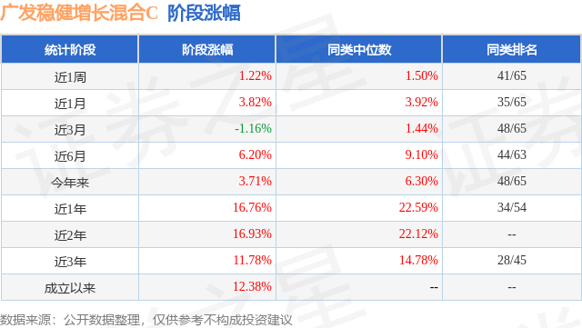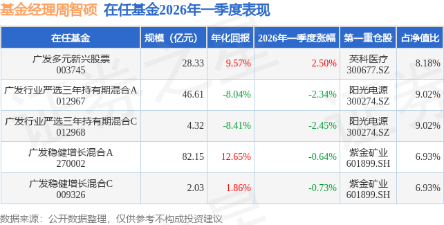 证券之星消息,日前广发稳健增长混合C基金公布一季报,2026年一季度最新规模2.03亿元,季度净值涨幅为-0.73%。