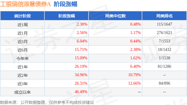 从业绩表现来看,工银瑞信添慧债券A基金过去一年净值涨幅为26.19%,在同类基金中排名81/1286,同类基金过去一年净值涨幅中位数为6.4%。而基金过去一年的最大回撤为-5.59%,成立以来的最大回撤为-18.47%。