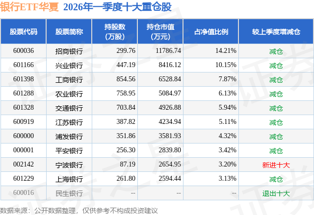 证券之星消息,日前银行ETF华夏基金公布一季报,2026年一季度最新规模8.3亿元,季度净值涨幅为-2.73%。