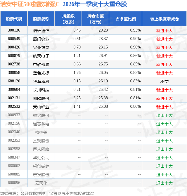 证券之星消息,日前诺安中证500指数增强C基金公布一季报,2026年一季度最新规模0.04亿元,季度净值涨幅为2.41%。