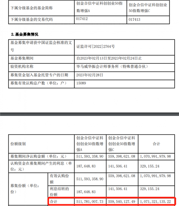 创金合信旗下一只新基金——创金合信中证科创创业50指数增强募集规模也不俗,达到10.71亿元,有效认购户数为15089户。