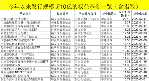 而从2023年权益基金发行来看,此前规模最大的一只权益基金也仅22.18亿元。若博时这只基金宣布成立,或将成为2023年目前募集规模最大的权益基金。
