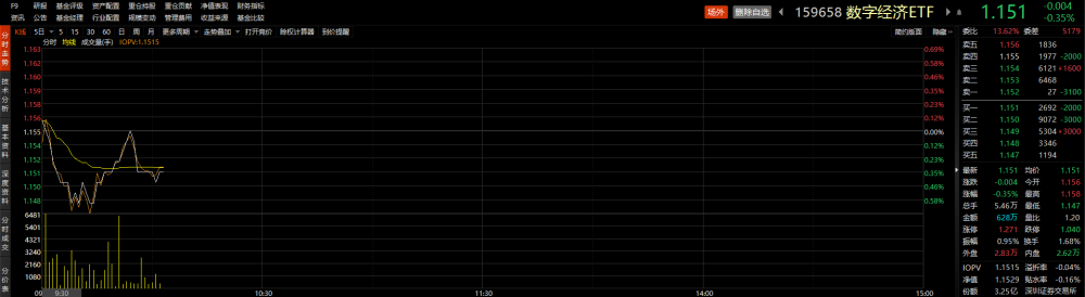 持有深信服的数字经济ETF(159658)早盘小幅下跌,截至发稿时,跌幅为0.61%。