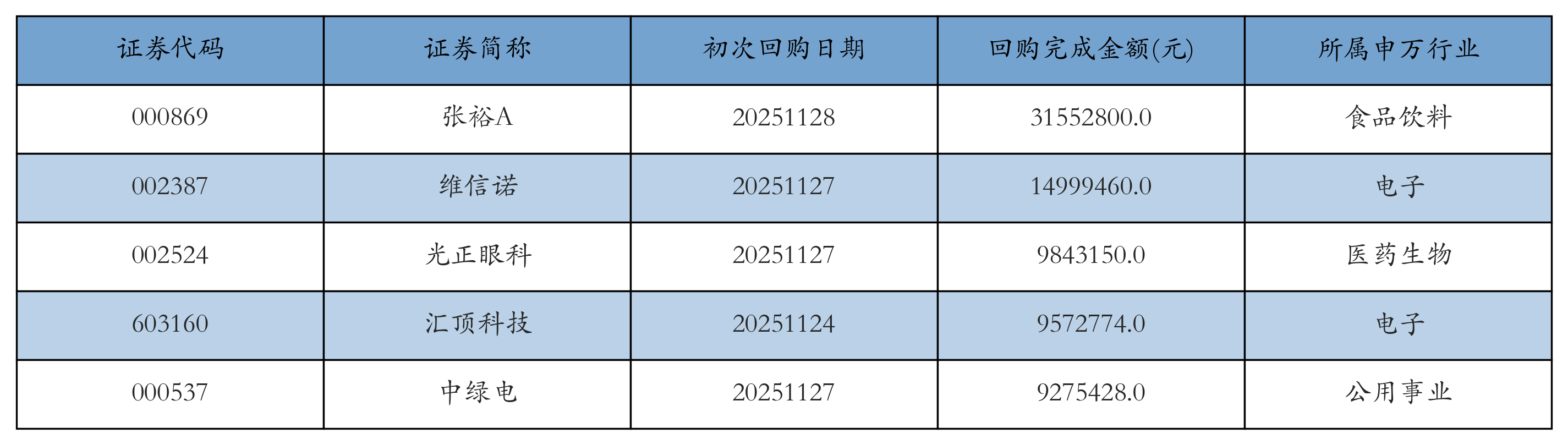 上周共有15条开始执行回购公告,其中执行金额最多的5条公告为:
