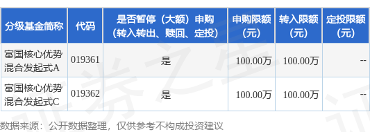 证券之星消息,10月9日富国基金管理有限公司发布《关于富国核心优势混合型发起式证券投资基金暂停大额申购、转换转入及定期定额投资业务的公告》。公告中提示,为了保证基金的平稳运作,保护基金持有人的利益,自2024年10月9日起富国核心优势混合型发起式证券投资基金暂停大额申购、转换转入及定期定额投资业务,下属分级基金调整明细如下: