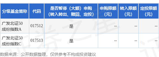 证券之星消息,10月11日广发基金管理有限公司发布《关于广发北证50成份指数型证券投资基金暂停申购(含转换转入、定期定额和不定额投资)业务的公告》。公告中提示,为保护基金份额持有人利益,自2024年10月11日起广发北证50成份指数型证券投资基金暂停申购(含转换转入、定期定额和不定额投资)业务,下属分级基金调整明细如下:
