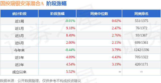 从业绩表现来看,国投瑞银安泽混合A基金过去一年净值涨幅为4.09%,在同类基金中排名705/1322,同类基金过去一年净值涨幅中位数为4.43%。而基金过去一年的最大回撤为-11.62%,成立以来的最大回撤为-14.9%。