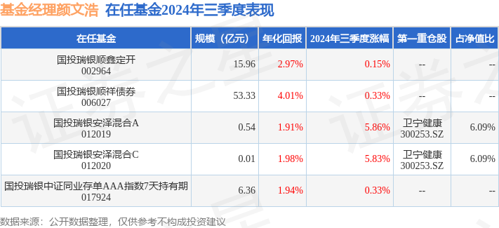 证券之星消息,日前国投瑞银安泽混合A基金公布三季报,2024年三季度最新规模0.54亿元,季度净值涨幅为5.86%。