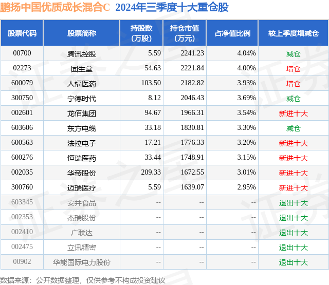 证券之星消息,日前鹏扬中国优质成长混合C基金公布三季报,2024年三季度最新规模0.8亿元,季度净值涨幅为14.68%。