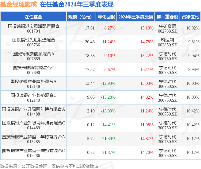 证券之星消息,日前国投瑞银产业趋势混合C基金公布三季报,2024年三季度最新规模9.05亿元,季度净值涨幅为14.92%。