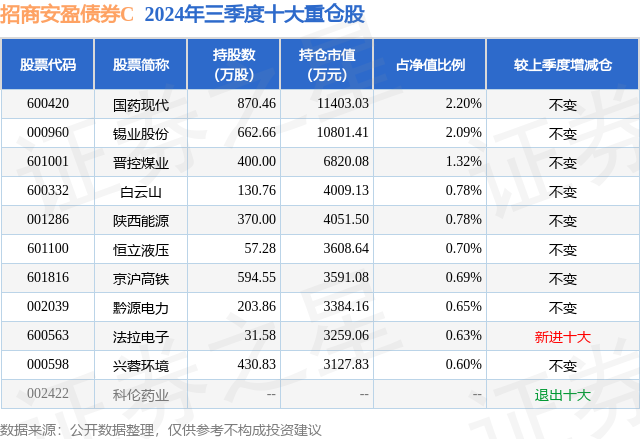 证券之星消息,日前招商安盈债券C基金公布三季报,2024年三季度最新规模5.92亿元,季度净值涨幅为2.23%。